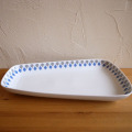 ベント・セヴェリンがデザインした、ダンマルクのプレートを入荷しました。1950年代に作られたDAN-ILDのマークが入っています。雫の模様が可愛くて心踊らされるデザインです。とても大きいプレートなので、色々なショートケーキを乗せたり、サラダを乗せるとテーブルが賑やかになると思います。特に、目立つようなキズはありません。