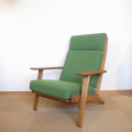 ハンス・J・ウェグナーの「GE-290」ハイバックが入荷しました。数あるイージーチェアの中で一番人気。もちろん彼の作品の中でも特別なイージーチェアです。少し力強いイメージがするオークのフレーム。座り心地はオリジナルのスプリングのまま体感頂けます。フレームの状態は、目立つようなキズ等は無く、オイル仕上げしております。ファブリックは、国産のモノに張り変えました。大変キレイな状態です。よりリラックス出来るイージーチェアをお探しの方には、こちらのハイバックモデルはオススメです。※GE290 オットマン【オーク】と一緒にご購入の場合はセット価格としまして20,000円を値引きさせていただきます。