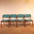 エリック・バックがデザインしたダイニングチェアを入荷しました。チークのフレームに丸みのあるシートが取り付けられた、かわいいデザインです。シートと広めのバックレストによって座り心地も良く、長時間座っていても疲れにくいです。ファブリックは新しいものに交換してありますので、これから長くお使い頂けます。4脚セットでの販売になります。