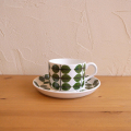 スティッグ・リンドベリがデザインしたベルサのカップ&ソーサーを入荷いたしました。白のベースカラーに葉っぱが描かれたベルサは、1960?1974年に製造されヴィンテージのテーブルウェアの中で最も人気があります。復刻盤も出ていますが、こちらはオリジナルのアイテムです。カップの淵に2センチほどのシミが見られ、少々ペイントロスがございますが、艶があり全体的にきれいな状態です。価格は、状態を考慮しております。