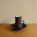 1957年にイェンス・クイストゴーがデザインした、DANSKのFlamestoneのカップ&ソーサーを入荷致しました。石の彫刻の様なデザインとマットな質感から、オブジェの様な存在感が感じられます。チョコレートブラウンと内側の白のコントラストがとても美しいお品です。クイストゴー自身も愛用していたフレームストーンは、とても人気のあるシリーズです。