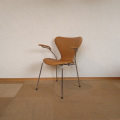 Arne Jacobsen/アルネ・ヤコブセンの代表作セブンチェアのアームチェアバージョン、3207を入荷いたしました。アームは、後ろの脚と一体となり、美しい曲線をつくりだし、また、座り心地の良さを生み出しております。ヤコブセンのこだわりが随所に感じられるデザインです。こちらは、ヌメ革で張られた、とても贅沢で綺麗なアイテムです。