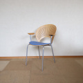 Nanna Ditzel / ナナ・ディッツェルが1993年にデザインしたトリニダードチェアが入荷しました。トリニダード・ドバコの伝統的な建築様式をもとにしており、背面に透かし彫りが施されています。スタッキング機能があり、収納スペースにも考慮されており、公共施設などにて使用されていました。両側にアームがついたタイプとなります。